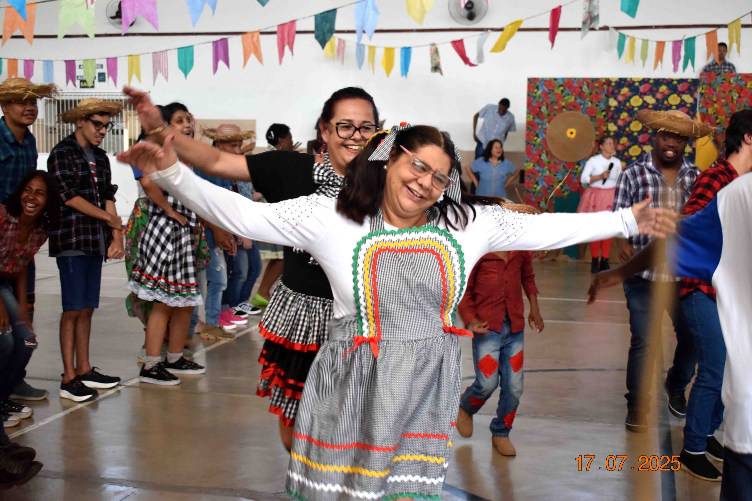 Tivemos também uma apresentação especial do grupo de dança do CAEE e após, a grande quadrilha. Cada um com o seu par, todos participaram do momento que é o mais aguardado de todo arraiá.